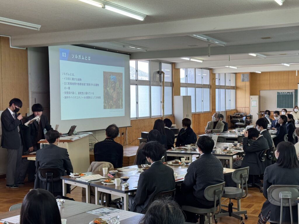 総合的な探究の時間、普通科(学際探究・地域探究・スポーツ探究)コース授業でSDGs学習・地域貢献・スポーツを通して、地域活性化・異文化理解等を学び、地方からの国際交流を目指す。また、商業科では空き店舗を利用して商店街の活性化を考案。これら学んだSDGs学習を、地域の方々や小中学生に広げる活動を生徒会活動の柱とする。全校をあげて探究プログラムに取り組む。