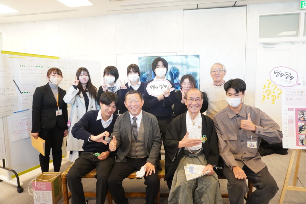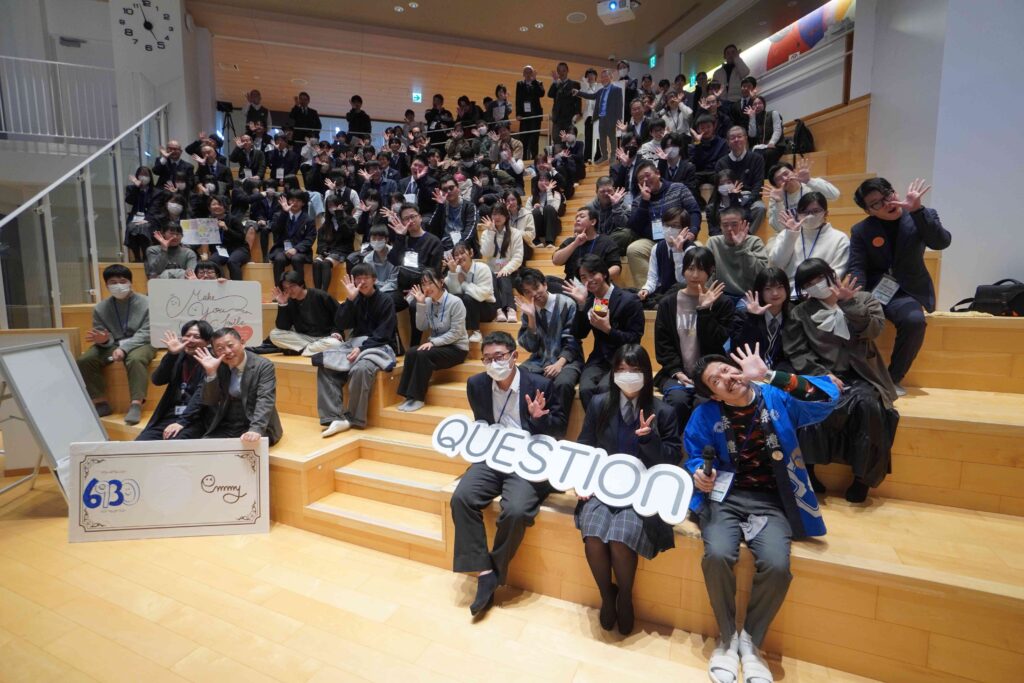イベントの集合写真。探究活動によって生み出した市民の笑顔を、関係者が独自通貨「emmy(エミー)」で評価した結果、自分たちの活動が6,930emmyもの笑顔につながったことに、生徒たちは確かな手応えを感じていた。