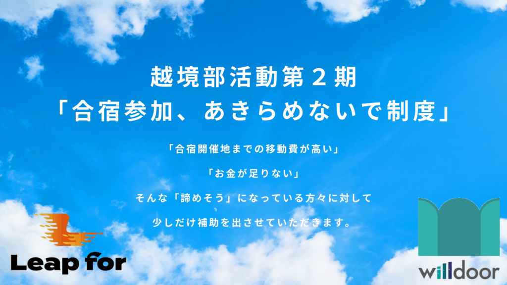 合宿開催地までの交通費や宿泊費を補助する「合宿参加、あきらめないで制度」
