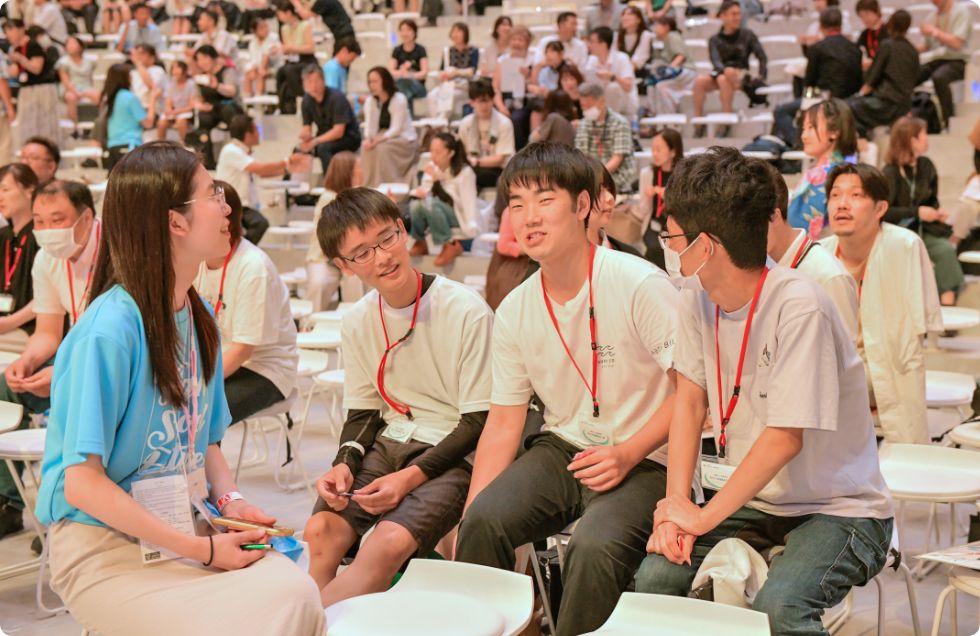 第2部では、全国から500人の高校生が応募。その中から選ばれた60人が、2024年8月に横浜・みなとみらいで行われた第1回目の合宿に参加しました。初対面ながらもすぐに打ち解け、12月の第2回合宿、そして2025年3月の第3回合宿を経て、万博で発信するテーマやメッセージを練り上げました。