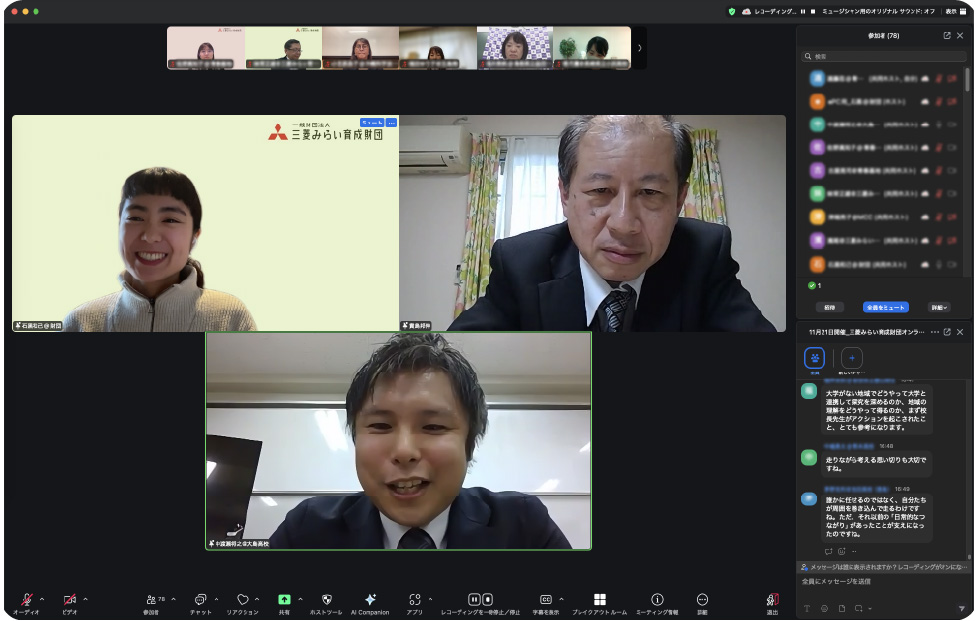 三菱みらい育成財団では、さまざまな立場の助成先や、3年間の助成を終えたアルムナイの皆さまが集まり、